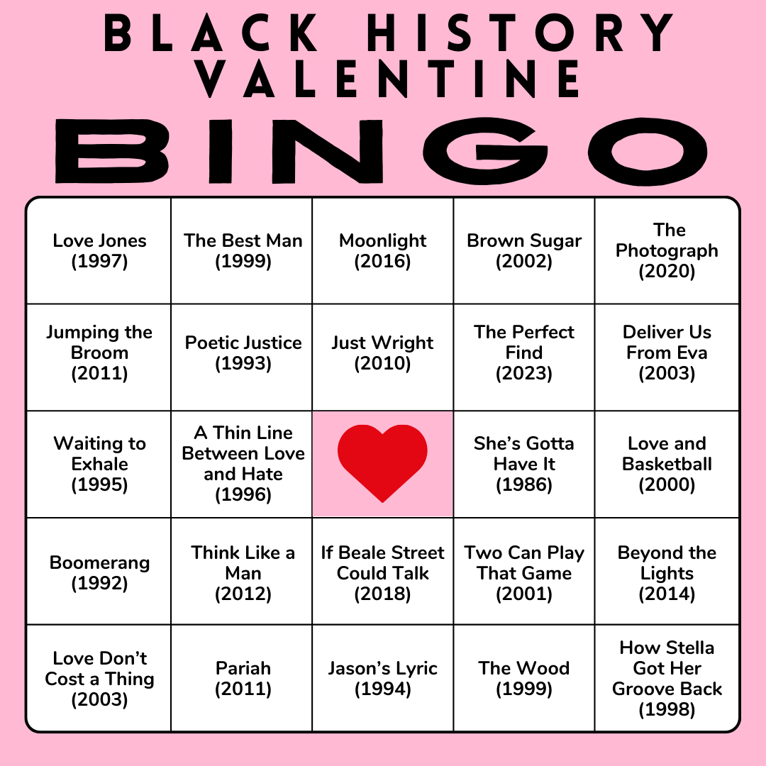 Below, I also included a complete list of the 25 films I selected, along with their trailers. You can check them out to learn more about each movie. While watching the trailers, you can also reflect on the questions and observe how tropes and themes play out, even in the film summaries. And, I hope you enjoy this Binge-Watch Bingo challenge for Black History/Valentine’s Day!